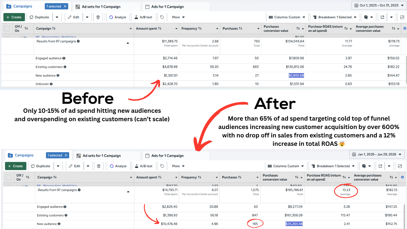 Our average E-Commerce client experiences a 41% increase in ROAS and a 55% increase in advertising profit in the first 90 days