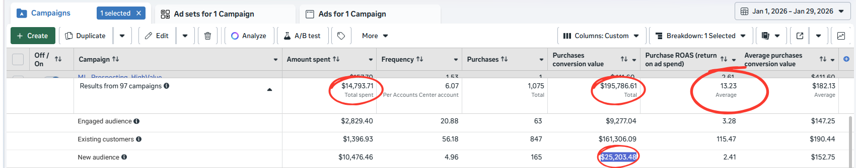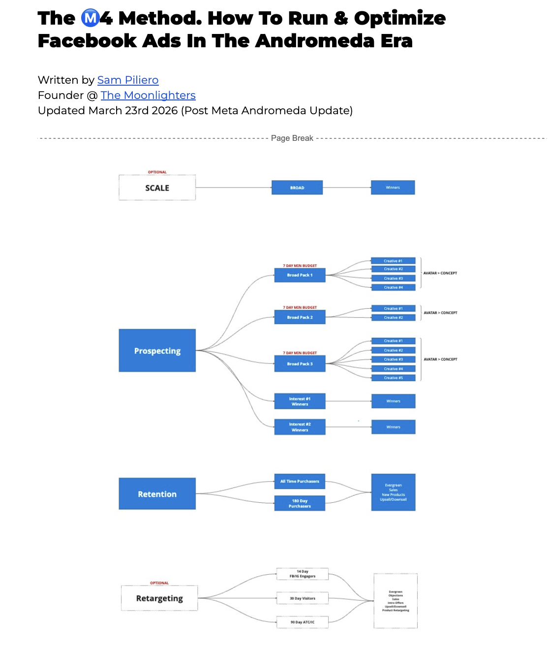 The M4 Method is a comprehensive system for scaling ROAS (Return on Ad Spend) in E-Commerce advertising. The average brand we have implemented this 4-step optimization system for has experienced a 43% increase in ROAS in the first 90 days while scaling their advertising spend by over 55% during this same period.