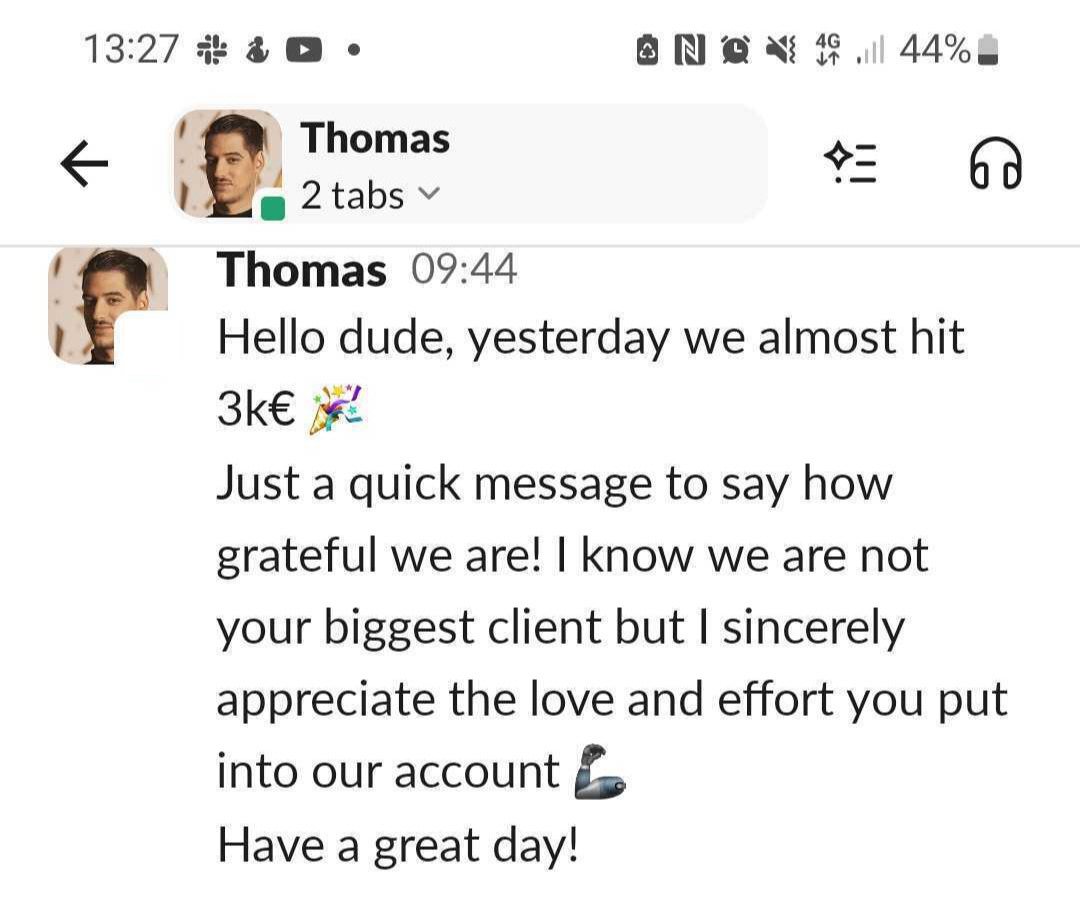 We operate more like a partner; your Growth Director, who manages your account, will get paid more as the account scales as this aligns incentives and ensures everyone is rowing the boat in the same direction.
