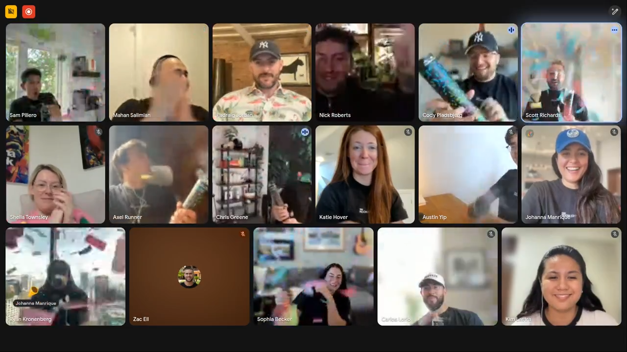 Group call with the team to celebrate hitting a major milestone in Q3 2025